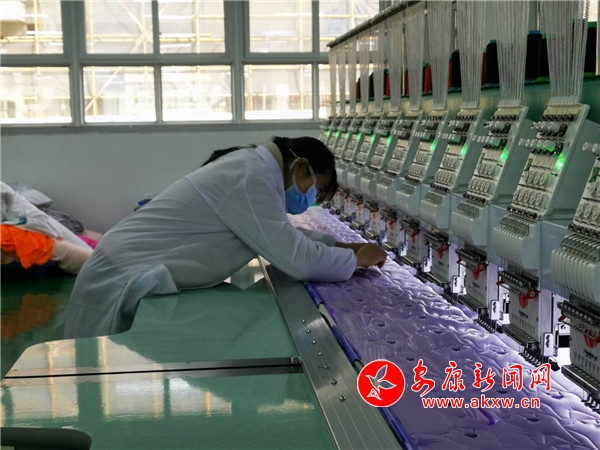 本網(wǎng)訊(通訊員 黃云慧)“我就住在這個(gè)社區(qū),在這里上班每月能拿2000多,我很滿(mǎn)足了”,五里鎮(zhèn)泰炫電腦繡花公司女工李榮雪一邊說(shuō)著一邊手上不停地清點(diǎn)著貨物數(shù)量。李榮雪是五里鎮(zhèn)朝陽(yáng)社區(qū)二組村民,今年50歲了,兩個(gè)孩子都在上學(xué),經(jīng)鄰居介紹到工廠(chǎng)里務(wù)工,實(shí)現(xiàn)掙錢(qián)和持家兩不誤。