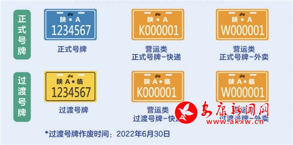 電動(dòng)自行車號(hào)牌號(hào)碼均為7位數(shù)字。正式的電動(dòng)自行車號(hào)牌底色為藍(lán)色,字體和框線為白色;過渡號(hào)牌底色為黃色,字體和框線為黑色。營運(yùn)類號(hào)牌底色為橘色,字體和線框?yàn)榘咨?/span>