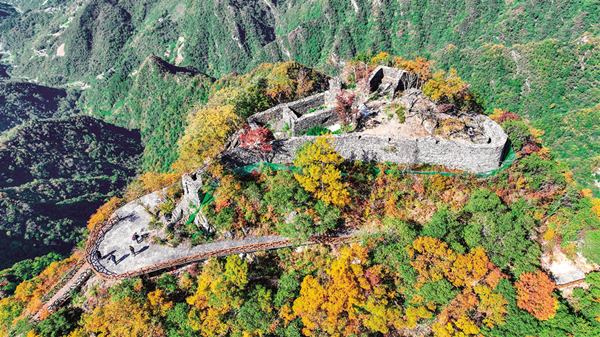 全勝寨位于我市嵐皋縣民主鎮(zhèn),是一個(gè)隱于群山、建于絕壁之上、保存完整的古山寨群落。古寨遺存的多處石砌城墻和戰(zhàn)壕錯(cuò)落有致,延綿數(shù)公里,為秦巴山區(qū)所罕見(jiàn)。據(jù)當(dāng)?shù)厥分居涊d,此寨始建于明末,是當(dāng)?shù)孛癖姙槎惚軕?zhàn)亂而建。因山寨抵御多次外來(lái)侵?jǐn)_,屢獲全勝,故名“全勝寨”。這里平均海拔1300至1500米,是陜西省第七批文物保護(hù)單位,也是目前我省保存較為完好、歷史戰(zhàn)績(jī)輝煌的寨堡,同時(shí)也是重要的革命歷史舊址。對(duì)于研究明、清、民國(guó)時(shí)期嵐皋歷史文化和寨堡建筑具有重要價(jià)值。(袁法 攝)