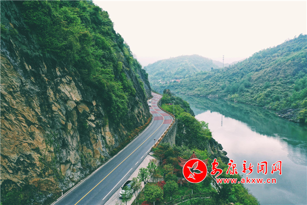 “清風(fēng)拂綠柳,白水映紅桃。舟行碧波上,人在畫中游?!蓖蹙S的這首《周莊河》仿佛寫的就是石泉山水畫廊之景,蜿蜒的水路,碧綠的山川環(huán)繞,當(dāng)畫舫駛過江面,波紋也隨著游船慢慢在江面上劃出兩岸青山的倒影。江水奔流不息,兩岸風(fēng)景如畫,鳥雀自由翱翔。不似江南婉約,卻有其靈秀,不若塞北廣袤,卻有其疏朗。
