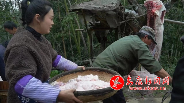 就這樣,抖音號(hào)“菲兒姑娘”出發(fā)啦。她平時(shí)負(fù)責(zé)策劃及出鏡。在2023年2月9日的采訪中,楊菲對(duì)華商報(bào)記者說:“我們的視頻一般是從食材的選取開始拍,比如炒臘腸,每個(gè)產(chǎn)品都是經(jīng)過精挑細(xì)選,也都是選取當(dāng)?shù)剞r(nóng)戶自己養(yǎng)殖的豬,整個(gè)制作過程也都會(huì)拍進(jìn)視頻里,就會(huì)不斷有粉絲朋友詢問購(gòu)買臘腸、臘肉?!?022年11月份,僅用半個(gè)月時(shí)間該賬號(hào)幫村民賣完了5000余斤豬肉,還有不少客戶已經(jīng)在預(yù)定明年的臘肉,這讓附近的農(nóng)戶信心倍增。