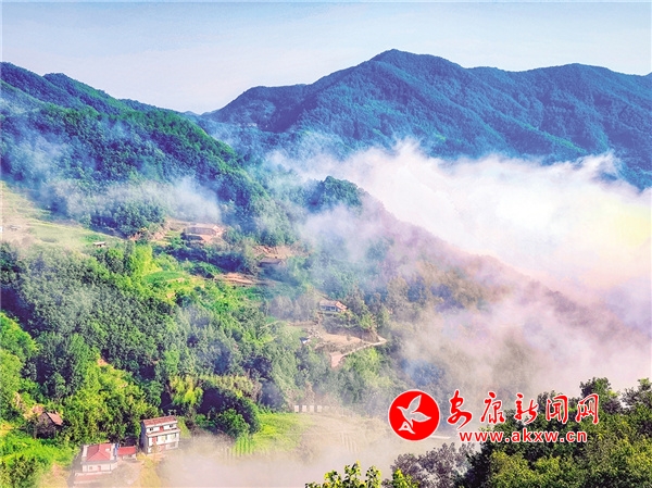 霧在山崖,白茫茫,棉花般鋪開,太陽(yáng)高高掛在云海之上,青峰若隱若現(xiàn),車鉆云穿霧,人飄然若仙,撲哧驚飛的鳥兒,在樹梢上撒歡。