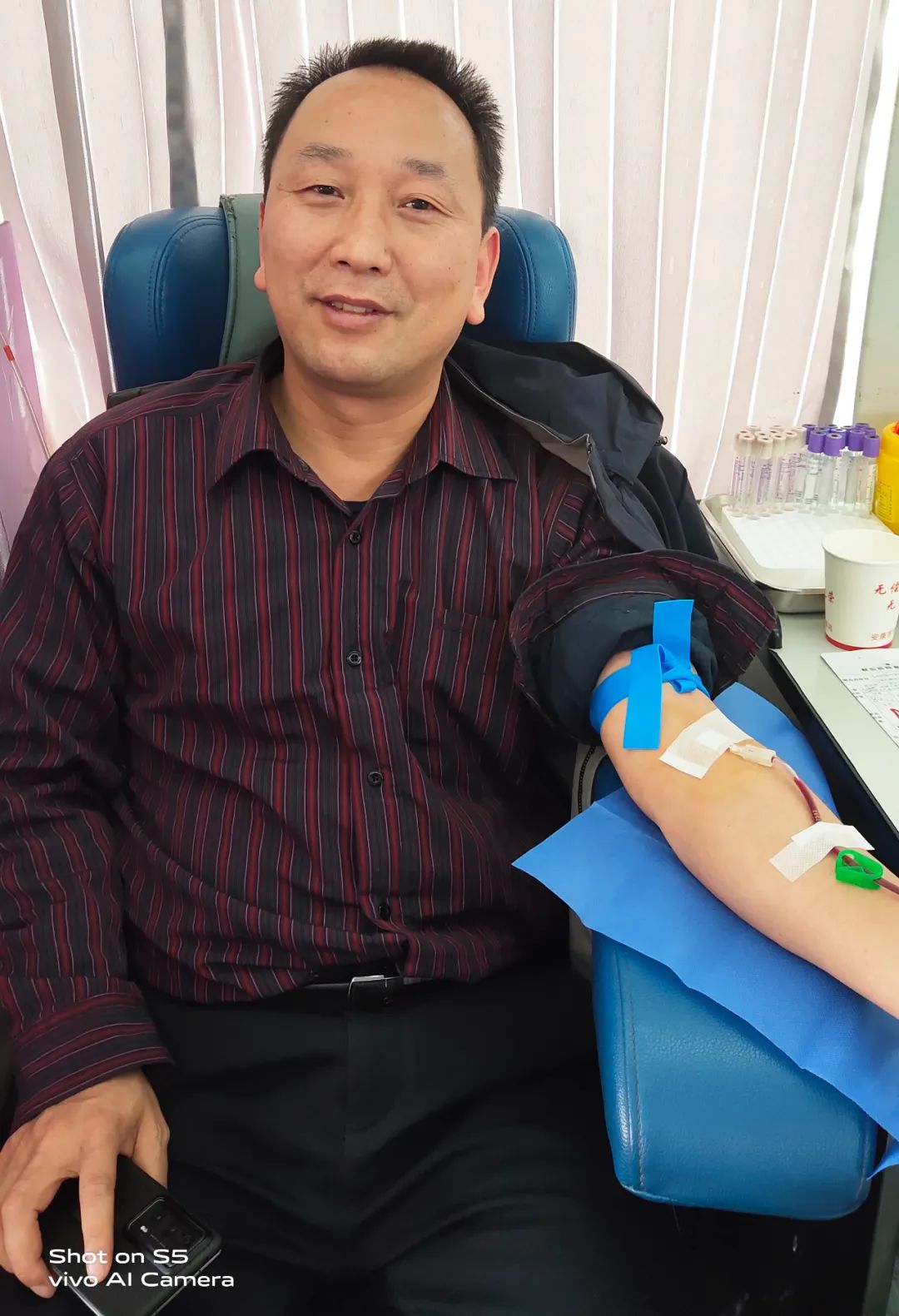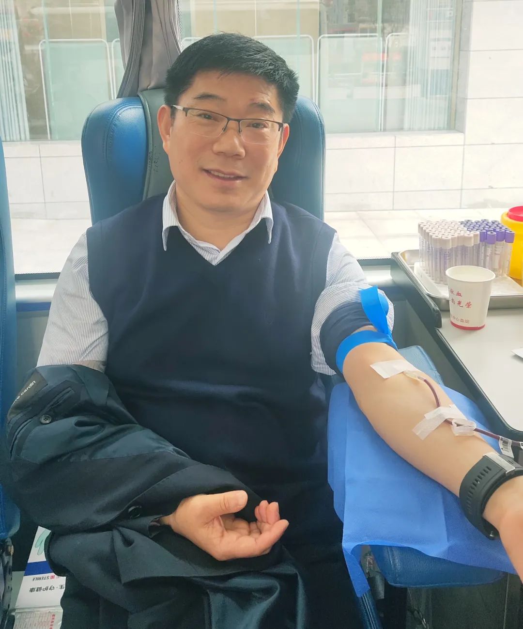 黨辦主任李子梅笑著說:“我一直想獻(xiàn)血,前幾次因?yàn)樯眢w原因沒有獻(xiàn)成,還特別遺憾,這次檢測符合獻(xiàn)血標(biāo)準(zhǔn)后我特別高興,作為醫(yī)務(wù)工作者,能夠?yàn)闊o償獻(xiàn)血事業(yè)貢獻(xiàn)自己一份微薄的力量,這很有意義?!?/p>