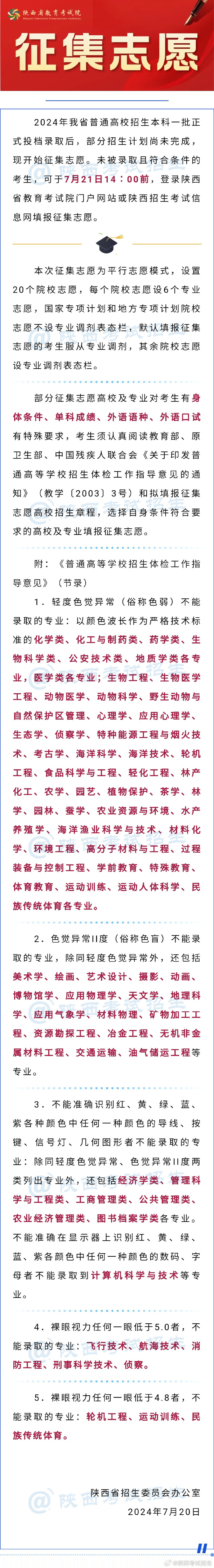 原標(biāo)題:2024年陜西省普通高校招生本科一批錄取征集志愿