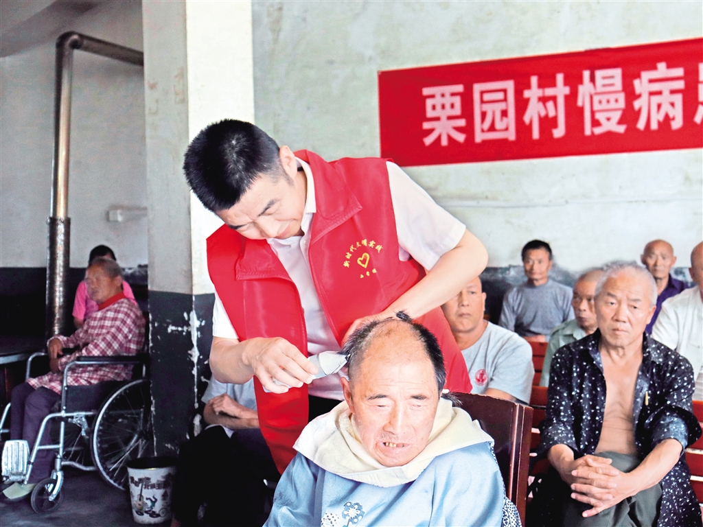 為弘揚(yáng)中華民族“孝老、敬老、愛老”傳統(tǒng)美德,8月7日,白河縣西營鎮(zhèn)機(jī)關(guān)黨支部組織黨員來到西營鎮(zhèn)區(qū)域敬老院開展“弘揚(yáng)孝義善舉 倡導(dǎo)文明鄉(xiāng)風(fēng)”志愿服務(wù)活動。活動中,志愿者們?yōu)槔先藗兲峁┝烁啐g補(bǔ)貼認(rèn)證、修剪指甲、打掃衛(wèi)生等志愿服務(wù)。(劉焱 胡曉華 攝)