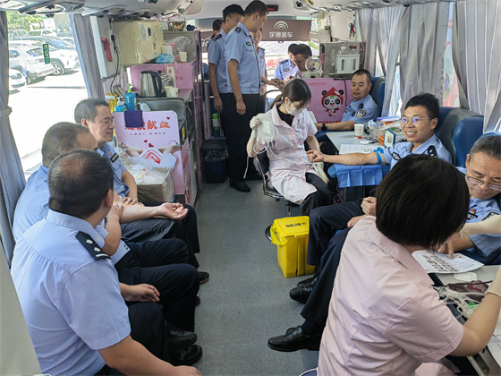 活動(dòng)現(xiàn)場(chǎng),參與獻(xiàn)血的公安干警們?cè)缭鐏?lái)到獻(xiàn)血點(diǎn),在醫(yī)護(hù)人員的指導(dǎo)下,認(rèn)真填寫(xiě)獻(xiàn)血登記表,依次接受健康征詢、血液初篩檢查、現(xiàn)場(chǎng)采血等流程。鮮紅的熱血順著導(dǎo)管緩緩流出,匯聚成了一份份愛(ài)心,每個(gè)人的臉上都洋溢著堅(jiān)定和自豪。
