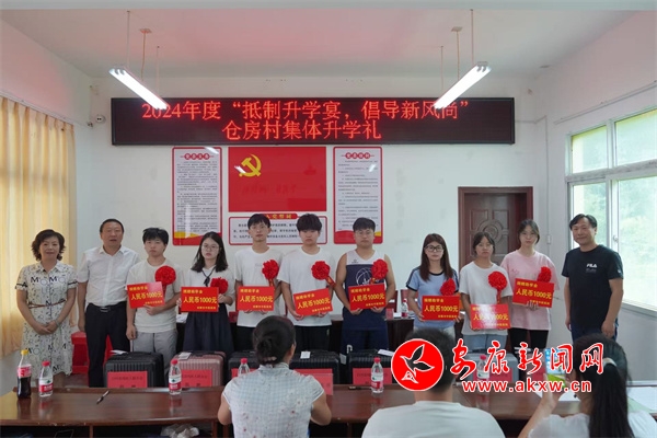 自2017年白河縣首場集體升學(xué)禮在倉房村順利舉辦以來,倉房堅(jiān)持村連續(xù)七年為準(zhǔn)大學(xué)生們舉辦集體升學(xué)禮儀式。8月9日,倉房村攜手市中醫(yī)醫(yī)院和縣殘聯(lián)在全鎮(zhèn)率先開展集體升學(xué)禮儀式,在儀式上市中醫(yī)醫(yī)院和縣殘聯(lián)分別為準(zhǔn)大學(xué)生們送上助學(xué)金和行李箱,并勉勵(lì)他們求學(xué)路上要堅(jiān)定理想,培養(yǎng)良好的人生觀、價(jià)值觀,勤奮學(xué)習(xí)練就過硬本領(lǐng),回報(bào)家鄉(xiāng)。