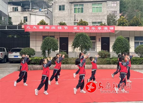 為弘揚(yáng)中華民族尊老敬老的傳統(tǒng)美德,培養(yǎng)幼兒尊老、敬老、助老、愛(ài)老的美好品質(zhì),在重陽(yáng)節(jié)來(lái)臨之際,10月10日,旬陽(yáng)市小河鎮(zhèn)中心幼兒園組織孩子們,走進(jìn)小河區(qū)域敬老院,開(kāi)展“九九重陽(yáng)慶佳節(jié),老幼同樂(lè)享溫暖”實(shí)踐活動(dòng)。活動(dòng)中,孩子們?yōu)闋敔斈棠太I(xiàn)上了精心準(zhǔn)備的歌舞表演,老人們和孩子們一起系上大紅綢,扭起秧歌來(lái),大家一起進(jìn)行了有趣的游戲。孩子們用稚嫩的動(dòng)作,甜美的笑容,給老人們平淡的生活里帶去了歡樂(lè)。(通訊員 劉曉玲 李冬梅)?