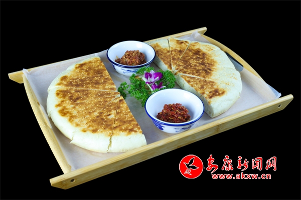 “甜酒火燒饃”,是石泉縣幾代人美食智慧的積累,傳承至今,是深受人們喜愛的小吃。它是采用古老傳統(tǒng)老酵面加甜酒發(fā)面,將老酵面、甜酒加入溫水后,再加入面粉一起攪拌均勻后再揉面。把面團揉制光亮后放置幾小時待其自然發(fā)酵。等到面團成發(fā)泡蜂窩狀態(tài),才可以開始將面團做成圓形,在用搟面杖搟薄圓形面團放入柴火灶鍋中,撒上芝麻,小火炕制一面黃在翻面炕制兩面色澤金黃。吃進嘴里有小麥淡淡的清香味,也有甜酒的甜香味,回味無窮。杜光發(fā)制作的這道小吃獲得安康市2024年“安康味道”名小吃。