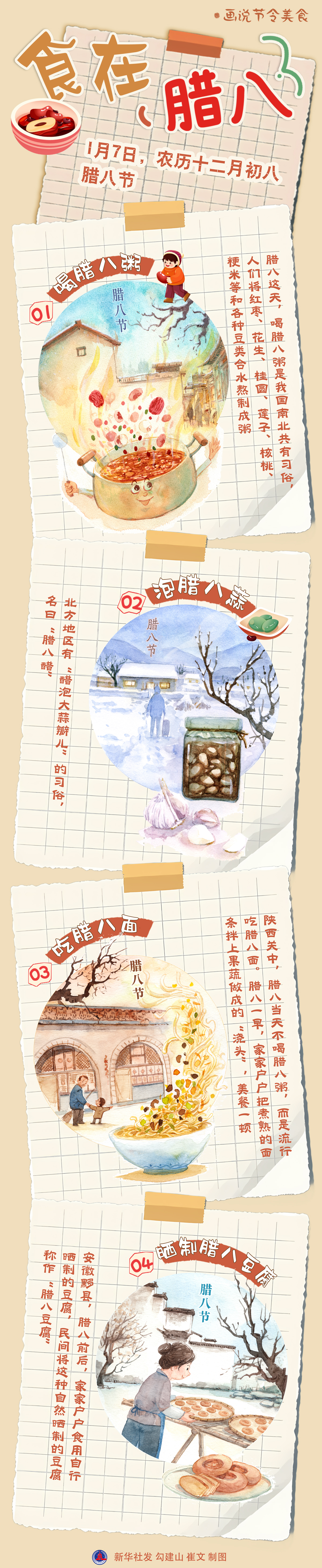 1月7日,農(nóng)歷十二月初八,是臘八節(jié)。臘八這天,喝臘八粥是我國南北共有習(xí)俗,人們將紅棗、花生、桂圓、蓮子、核桃、粳米等和各種豆類合水熬制成粥。
