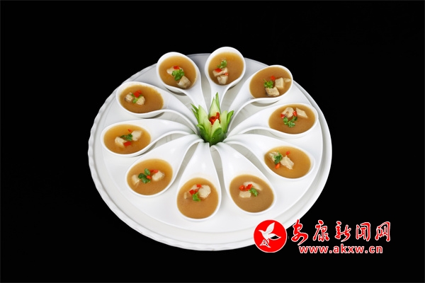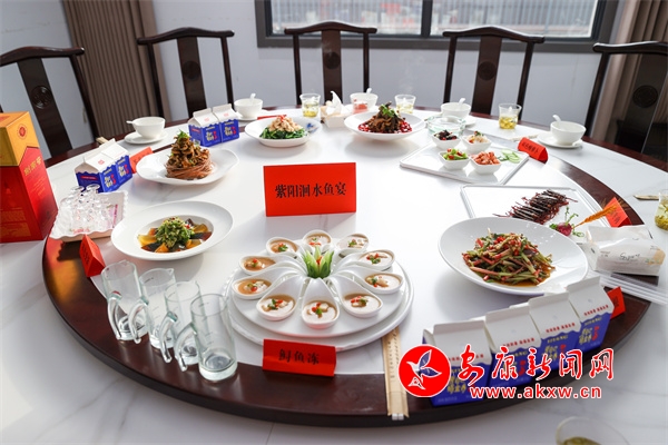 “紫陽洄水魚宴”由8個涼菜,即:香酥小魚、干煸牛肉、茶香魚皮、鱘魚凍、撈汁七彩花生、酸辣四拼、雙色變蛋、涼拌折耳根;8個熱菜即:茶香鱘魚、紫蘇魚片、熗鍋鯉魚、釀羊肚菌、辣子雞、臘味三拼、魚頭燉黑豆腐、當(dāng)歸白蘿卜燉羊肉;一個湯菜:魚丸湯;3道小吃即:魚肉餃子、茶香餅、紫菜魚餅;主食:金銀米飯、酸菜面和飯后水果拼盤組成。據(jù)了解該宴席是繼漢濱區(qū)流水魚宴、石泉縣江魚魚宴之后,全市公開推向市場的第三個以魚為主料的專業(yè)魚宴。?
