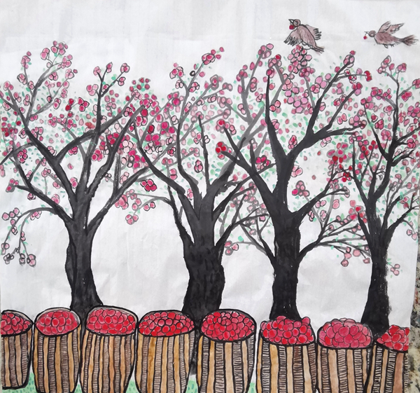 學(xué)校國畫社團(tuán)的孩子們,經(jīng)過兩天的緊張培訓(xùn)、繪制草圖、精心創(chuàng)作,十余名學(xué)生畫出了美麗鄉(xiāng)村的豐收?qǐng)鼍?,畫出了孩子們美好生活的快樂情趣,也畫出了漢調(diào)二黃戲劇人物水墨畫印象,從多角度贊美了美麗家園、幸福安康。在安康兒童美育專家宋安平和鄭字堂、王彬等老師的精心輔導(dǎo)下,孩子們的國畫作品,將選送參加中央美術(shù)學(xué)院少兒美術(shù)研究中心主辦的展覽。
