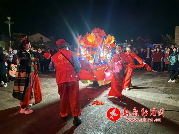 在位于漢陰縣平梁鎮(zhèn)的興隆佳苑社區(qū),春節(jié)期間,小區(qū)里處處洋溢著節(jié)日氛圍。夜幕降臨,社區(qū)廣場響起陣陣鑼鼓聲,耍花船表演正式開始。只見表演者雙手提船、配合默契,船體隨著“波浪”旋轉(zhuǎn)、顛簸,身穿喜慶艷麗的服裝、頭戴五彩頭飾的表演人員個個精神抖擻,一邊前行,一邊唱著漢陰本地的花鼓戲,祈求來年風(fēng)調(diào)雨順、福壽安康。翻飛的彩扇、華麗的彩船,精心編排、詼諧幽默的表演,為社區(qū)群眾呈現(xiàn)了一場精彩的視覺盛宴。