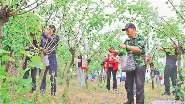 劉術(shù)榮的桑樹(shù)枝繁葉茂,桑葚掛滿枝頭,吸引了市民和游客觀光采摘。他每天請(qǐng)了十幾名工人幫忙,抓緊時(shí)間采收桑葚。經(jīng)過(guò)科學(xué)管護(hù),這片果桑園每年能產(chǎn)桑葚超過(guò)20噸,帶動(dòng)30余戶村民實(shí)現(xiàn)穩(wěn)定增收。