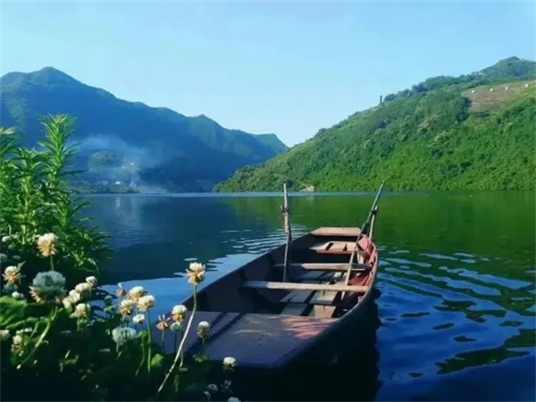 一行在火車上斑駁的木頭座位上坐定。不待提問,楊世芳用纏綿委婉的紫陽(yáng)話說有一年天干無雨,十里八方絕收沒得吃的,溪溝里卻流出源源不斷、白花花的大米,接濟(jì)鄉(xiāng)親們躲過了饑饉,算是上天對(duì)淳樸厚道的人們的饋贈(zèng)。這在《紫陽(yáng)縣志》里有記載,版本好幾個(gè),不過主題都是平時(shí)行善積福、災(zāi)時(shí)反饋回報(bào)的。這個(gè)流淌大米的溪溝旁襄渝鐵路剛好經(jīng)過,慢車停留3分鐘的車站便得名之大米溪車站。除了這個(gè)大米溪、旁邊還有個(gè)小米溪......老葉聽到糊涂處就打斷了堅(jiān)決要弄個(gè)明白,于是、楊世芳又轉(zhuǎn)換成標(biāo)準(zhǔn)的普通話輕聲講解。不經(jīng)意間,幾十分鐘一下子就過去了。出了這個(gè)半山中的大米溪火車站,是一段到漢江碼頭的青色、白色、斑斕的花色卵石鋪墊的小徑。卵石小臉盆大、有圓有方,鋪得凸凸凹凹,高一腳低一腳地往山底下、漢江邊蜿蜒,兩邊是叫不上名字的綠一片黃一片植物。我認(rèn)認(rèn)真真低下頭一步一步走、腿還有點(diǎn)兒打閃,真的還有點(diǎn)兒恐懼。待停住了腳,一抬頭看見老葉和楊世芳談得火熱、走在最前頭。