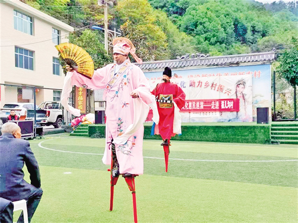 在五峰村,村支部書記羅仁春告訴記者,2023年村委會牽頭成立了五峰村文化民俗文藝協(xié)會,陸續(xù)加入的48名會員涵蓋老中青三代,既有傳承高蹺絕技的老人,也有主動學習弦子腔的年青一代。今年32歲的村民小梅加入?yún)f(xié)會后,一改往日下班后悶在家中的狀態(tài),每天下午吃完飯都會下樓和新認識的姐妹載歌載舞,很快就成為舞蹈隊的主力?!耙郧安恢牢覀兇迳线€有文藝協(xié)會,自從村上干部告訴我后,我就趕緊加入了這個小團體,既鍛煉了身體,又愉悅了心情,生活幸福感越來越強烈。”身著舞蹈服的小梅身姿婀娜,水袖飛揚間,明媚的笑容如花一樣燦爛。