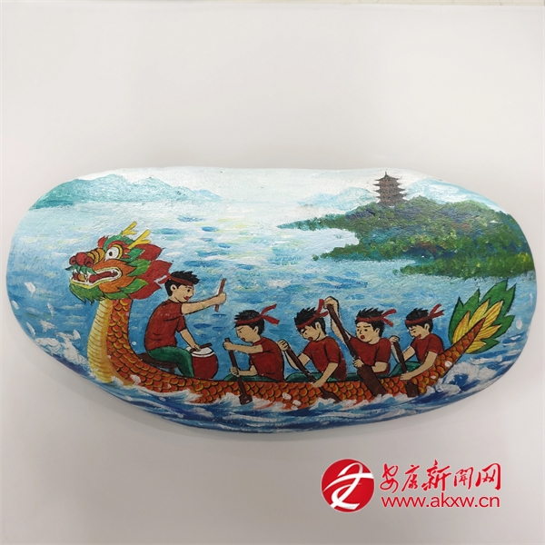 學生們充分發(fā)揮創(chuàng)意描繪漢江石畫