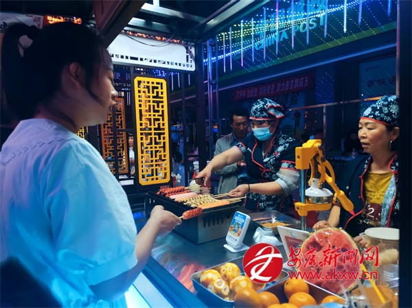 6月15日晚上,夜色漸深。寧陜縣濱河公園的小吃街變得熱鬧非凡。30家攤位整齊有序地排列開來,洋芋糍粑軟糯香甜,玉米鍋巴酥脆可口,麻辣豆腐干鮮香四溢,特色美食的香氣在空氣中彌漫開來,市民們絡(luò)繹不絕、穿梭其間。