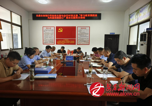 本網(wǎng)訊(通訊員?唐義德)7月21日,安康農(nóng)商銀行早陽支行黨支部與早陽鎮(zhèn)臺竹村黨支部聯(lián)合開展“學(xué)習(xí)教育強(qiáng)擔(dān)當(dāng) 為民服務(wù)映初心”主題黨日活動,30余名黨員在思想淬煉與行動實踐中凝聚服務(wù)合力,以黨建聯(lián)建推動金融服務(wù)下沉,共促鄉(xiāng)村振興。?