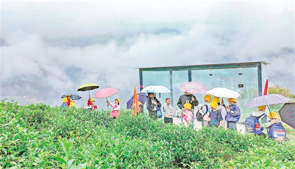 國慶期間,孩子們在紫陽縣向陽鎮(zhèn)的富硒茶觀光園,感受自然風(fēng)光與茶文化的獨特魅力。 儲茂銀 攝