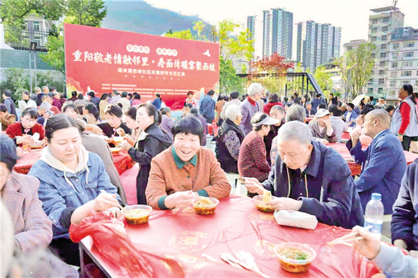 10月28日,嵐皋縣城關(guān)鎮(zhèn)西坡社區(qū)舉辦了“重陽敬老情融鄰里·壽面?zhèn)髋缇畚髌隆敝黝}活動(dòng)。廖霖 攝