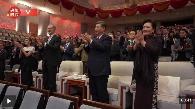 11月12日晚,國家主席習近平和夫人彭麗媛在北京國家大劇院同西班牙國王費利佩六世夫婦一同觀看西班牙皇家劇院音樂會。