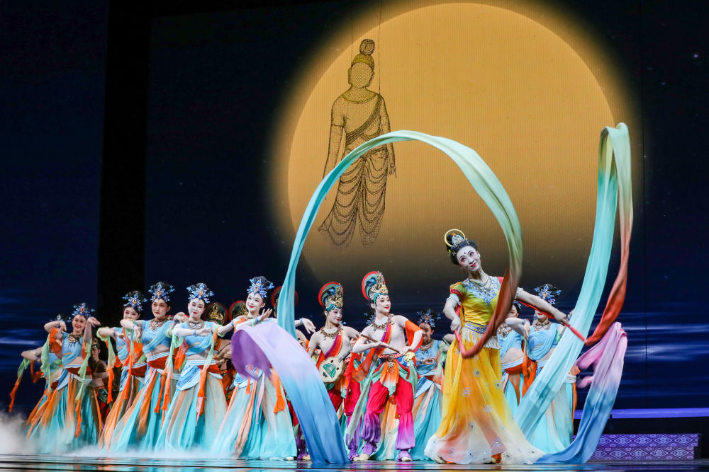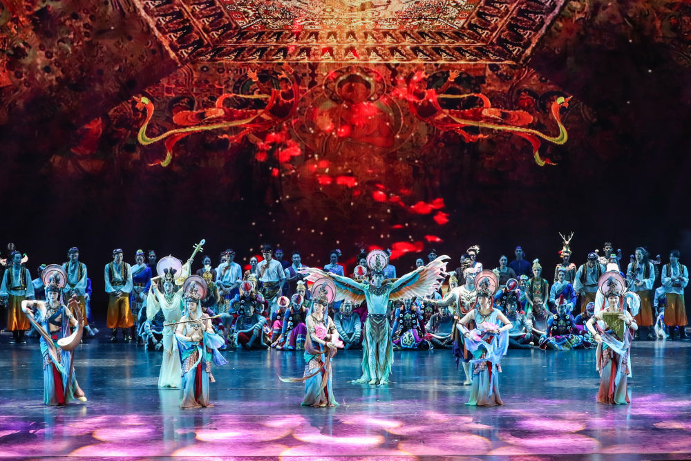 ??2025年9月20日,演員在敦煌大劇院表演新版《絲路花雨》。1979年,大型民族舞劇《絲路花雨》在中國西北誕生。編創(chuàng)者們從敦煌莫高窟的壁畫和彩塑中尋找靈感,將壁畫上凝固了千年的舞姿,轉(zhuǎn)化為動態(tài)舞蹈語言。40多年來,《絲路花雨》累計演出超4000場,足跡遍布40多個國家和地區(qū),被譽為“中國舞劇的里程碑”和“活的敦煌壁畫、美的藝術(shù)享受”。此次新版歷經(jīng)兩年半創(chuàng)排,通過復(fù)原與創(chuàng)新對經(jīng)典藝術(shù)進行當(dāng)代詮釋,彰顯了中華優(yōu)秀傳統(tǒng)文化的生命力。