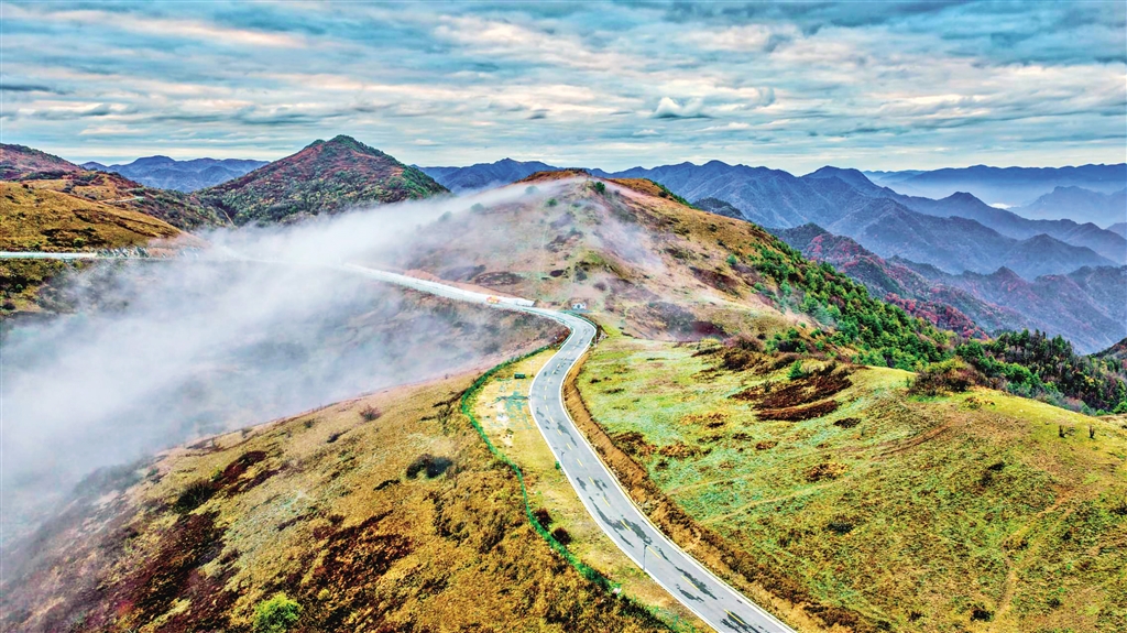 近日,薄霧如紗般漫過平利縣正陽草甸山脊上的盤山道。近年來,當(dāng)?shù)卮罅Πl(fā)展旅游交通,方便更多游客前來領(lǐng)略秦嶺巴山的雄渾壯美。皮勇維 攝
