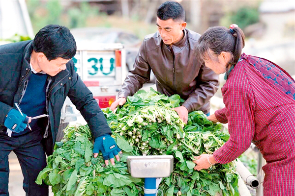 本網(wǎng)訊(通訊員 劉威 安少晨)正值冬季,紫陽縣煥古鎮(zhèn)劉家河村的田野上涌動著別樣的熱鬧。放眼望去,野油菜連成一片綠色海洋,肥厚的菜葉在陽光下泛著鮮亮的光澤。田間地頭,村民們挎著竹籃、推著小車,彎腰采摘、麻利打捆;不遠(yuǎn)處的加工廠房里,分揀、清洗、稱重、裝壇的流水線有條不紊,勾勒出一幅“田間忙采收、車間忙加工”的豐收畫卷。