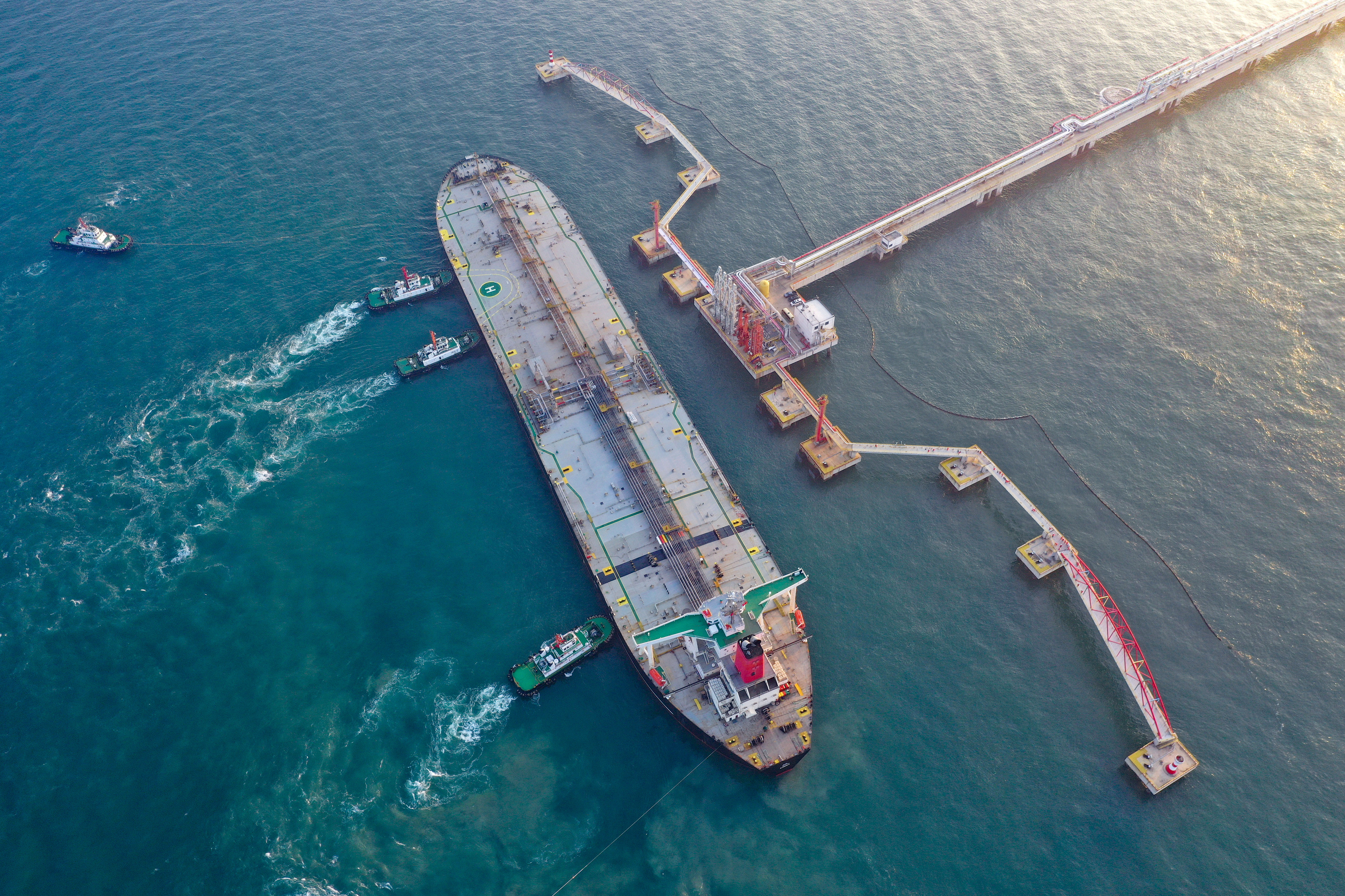 △ 2025年12月18日,一艘裝載著17.9萬噸石化原輔料的船舶泊入位于海南省儋州市的國投洋浦油儲碼頭30萬噸級原油泊位(無人機(jī)照片)。