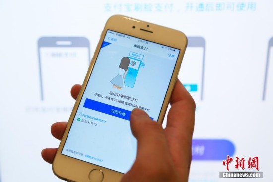 9月19日,刷臉支付需要先在支付寶APP上開通該項(xiàng)服務(wù)。近日,支付寶在杭州一家餐廳首次推出刷臉支付服務(wù),用戶開通該項(xiàng)功能后只需綁定手機(jī)號(hào),通過(guò)支付平臺(tái)刷臉即可完成交易,再也無(wú)須擔(dān)心付款時(shí)手機(jī)沒(méi)電或者忘帶的尷尬。中新社記者 王遠(yuǎn) 攝