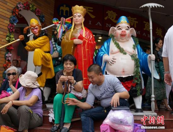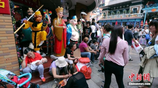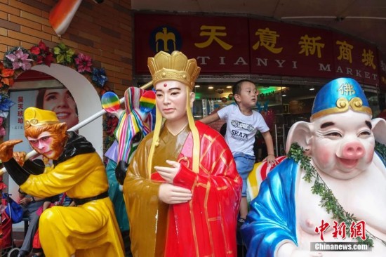9月15日,一孩童坐在天意門前西游記師徒雕像上遠(yuǎn)眺。當(dāng)日,自1992年開業(yè)至今的北京天意市場迎來其在北京西城阜外大街營業(yè)的最后一日,商家趁機“瘋狂甩貨”,大批北京民眾也紛至沓來。這里曾是北京著名的小商品商城,聚集了數(shù)千家商戶。為疏解北京非首都功能,天意商城將于本月16日關(guān)門停業(yè)。中新社記者 崔楠 攝