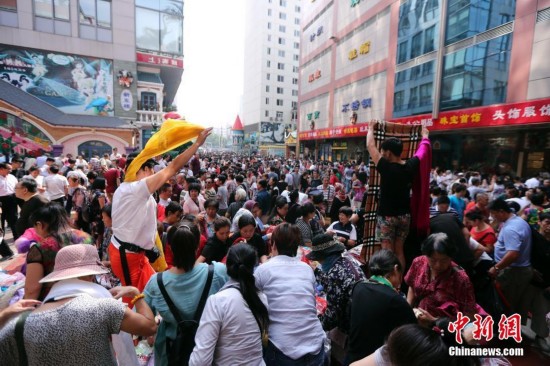 9月15日,幾位來自斯里蘭卡的游客慕名前來天意選購商品。當(dāng)日,自1992年開業(yè)至今的北京天意市場迎來其在北京西城阜外大街營業(yè)的最后一日,商家趁機“瘋狂甩貨”,大批北京民眾也紛至沓來。這里曾是北京著名的小商品商城,聚集了數(shù)千家商戶。為疏解北京非首都功能,天意商城將于本月16日關(guān)門停業(yè)。中新社記者 崔楠 攝