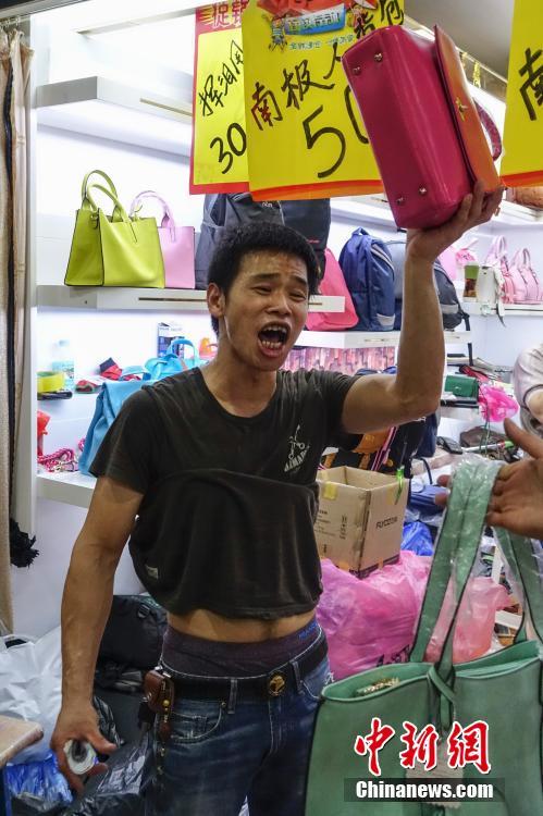 9月15日,一商家舉起商品大聲叫賣。當(dāng)日,自1992年開業(yè)至今的北京天意市場迎來其在北京西城阜外大街營業(yè)的最后一日,商家趁機“瘋狂甩貨”,大批北京民眾也紛至沓來。這里曾是北京著名的小商品商城,聚集了數(shù)千家商戶。為疏解北京非首都功能,天意商城將于本月16日關(guān)門停業(yè)。中新社記者 崔楠 攝