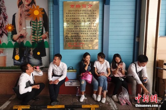 9月15日,市民購物后在天意批發(fā)市場中休息聊天。天意商城是北京規(guī)模最大的小商品批發(fā)兼零售市場,為疏解北京非首都功能,天意商城將于本月16日關(guān)門停業(yè)。中新社記者 韓海丹 攝
