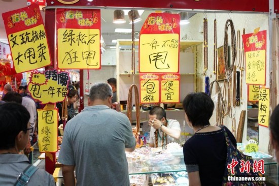 9月15日,商家打出“甩賣”標(biāo)語。天意商城是北京規(guī)模最大的小商品批發(fā)兼零售市場,為疏解北京非首都功能,天意商城將于本月16日關(guān)門停業(yè)。中新社記者 韓海丹 攝