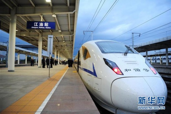 11月13日,55601次動車組試驗列車抵達(dá)江油站。新華社發(fā)(張博文攝)