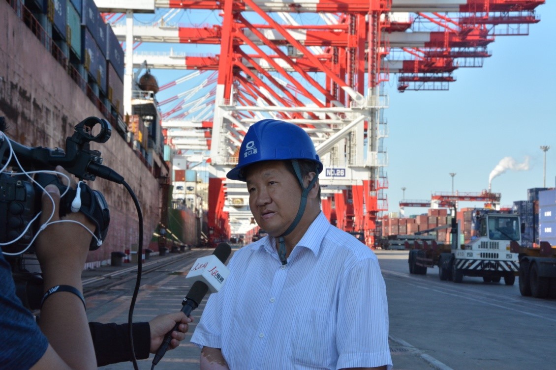 營口港務(wù)集團(tuán)工會副主席李昆接受采訪。 何淼攝