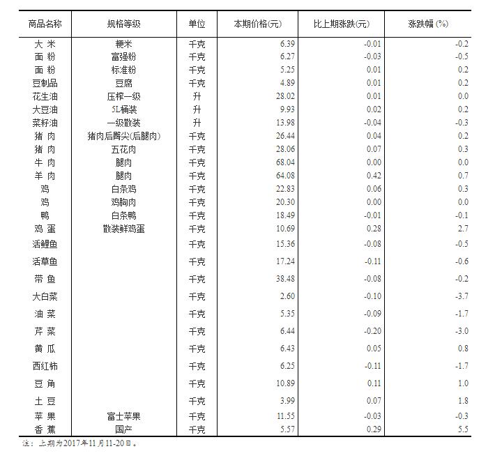 國(guó)家統(tǒng)計(jì)局:11月下旬大米面粉等12種食品價(jià)格下降