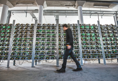 | 1月19日,奧地利伊布斯河畔魏德霍芬附近,一名“礦工”從加密幣“采礦”機(jī)組前經(jīng)過(guò)。 |