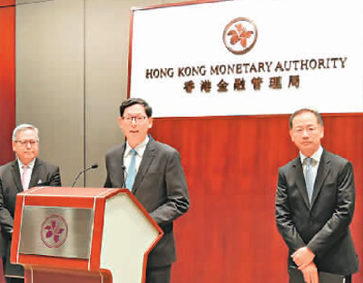 香港金融管理局總裁陳德霖(中)在介紹外匯基金投資回報情況。BTz安康新聞網(wǎng)