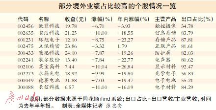 另外,安潔科技、環(huán)旭電子、歌爾股份、藍思科技和水晶光電等也都是蘋果概念的明星股。其中,藍思科技2017年上半年外銷收入為71.05億元,占主營業(yè)務收入比重為82.03%。安潔科技同期外銷營收占比為83.79%。環(huán)旭電子為87.81%。水晶光電的出口營收占比也達到56.83%。