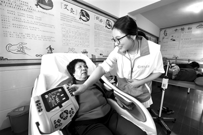 保險(xiǎn)業(yè)內(nèi)人士分析認(rèn)為,伴隨民眾保險(xiǎn)意識(shí)的不斷提升,“醫(yī)療+重疾”的商業(yè)保險(xiǎn)保障有望成為越來(lái)越多保險(xiǎn)客戶的“標(biāo)配”。這也將為健康險(xiǎn)市場(chǎng)轉(zhuǎn)型提供更強(qiáng)勁的動(dòng)力。圖為3月27日,護(hù)理員在福建省晉江市磁灶鎮(zhèn)大埔村敬老院中醫(yī)康復(fù)室為老人操控按摩椅。 記者 宋為偉 攝
