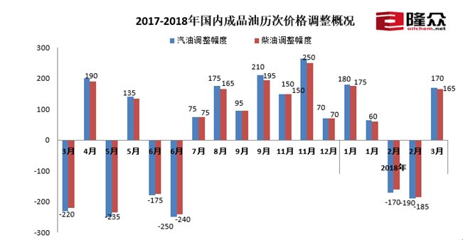 人民網(wǎng)北京3月28日電 (朱江)今日,記者從隆眾、卓創(chuàng)社會監(jiān)測機構(gòu)獲悉,3月29日零時將上調(diào)汽柴油限價,每噸汽油上調(diào)170、柴油上調(diào)165元,折合每升89#0.13、92#0.13、95#0.14、0#0.14元。隆眾原油分析師李彥表示,本次調(diào)價是今年第三次上調(diào),本次調(diào)價過后,2018年成品油調(diào)價將呈現(xiàn)“三漲兩跌一擱淺”的格局。