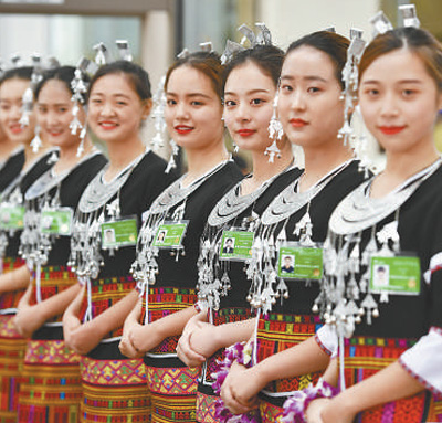 身著黎族服飾的博鰲亞洲論壇志愿者準備迎接嘉賓。DNx安康新聞網(wǎng)