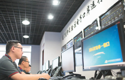 圖為工作人員在廈門自貿(mào)試驗(yàn)區(qū)電子口岸運(yùn)行監(jiān)控中心監(jiān)測運(yùn)行數(shù)據(jù)。zUi安康新聞網(wǎng)