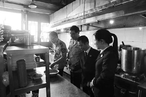 重慶市長(zhǎng)壽區(qū)食藥監(jiān)分局邀請(qǐng)區(qū)檢察院公益訴訟科檢察官監(jiān)督檢查食品安全。