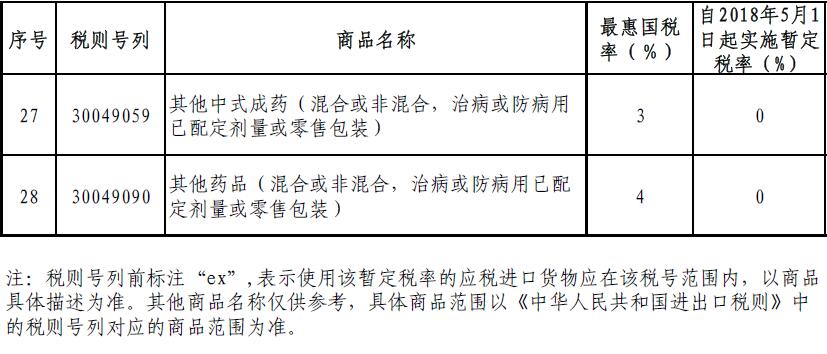 《公告》指出,根據(jù)《中華人民共和國(guó)進(jìn)出口關(guān)稅條例》相關(guān)規(guī)定,為減輕廣大患者特別是癌癥患者藥費(fèi)負(fù)擔(dān)并有更多用藥選擇,自2018年5月1日起,以暫定稅率方式將包括抗癌藥在內(nèi)的所有普通藥品、具有抗癌作用的生物堿類(lèi)藥品及有實(shí)際進(jìn)口的中成藥進(jìn)口關(guān)稅降為零。