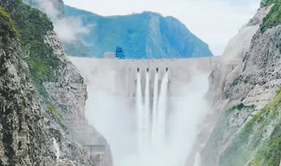 | 四川錦屏一級(jí)水電站高三百零五米,創(chuàng)世界拱壩高度紀(jì)錄 |