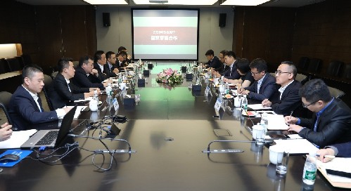 蘇寧控股集團(tuán)董事長張近東在蘇寧總部會晤華為消費(fèi)者業(yè)務(wù)CEO余承東